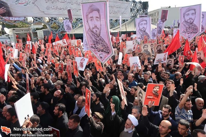 A huge crowd attending funeral procession in Najafabad city, Isfahan Province, on September 28, 2017, for Martyr Mohsen Hojajji, beheaded Iranian mili
